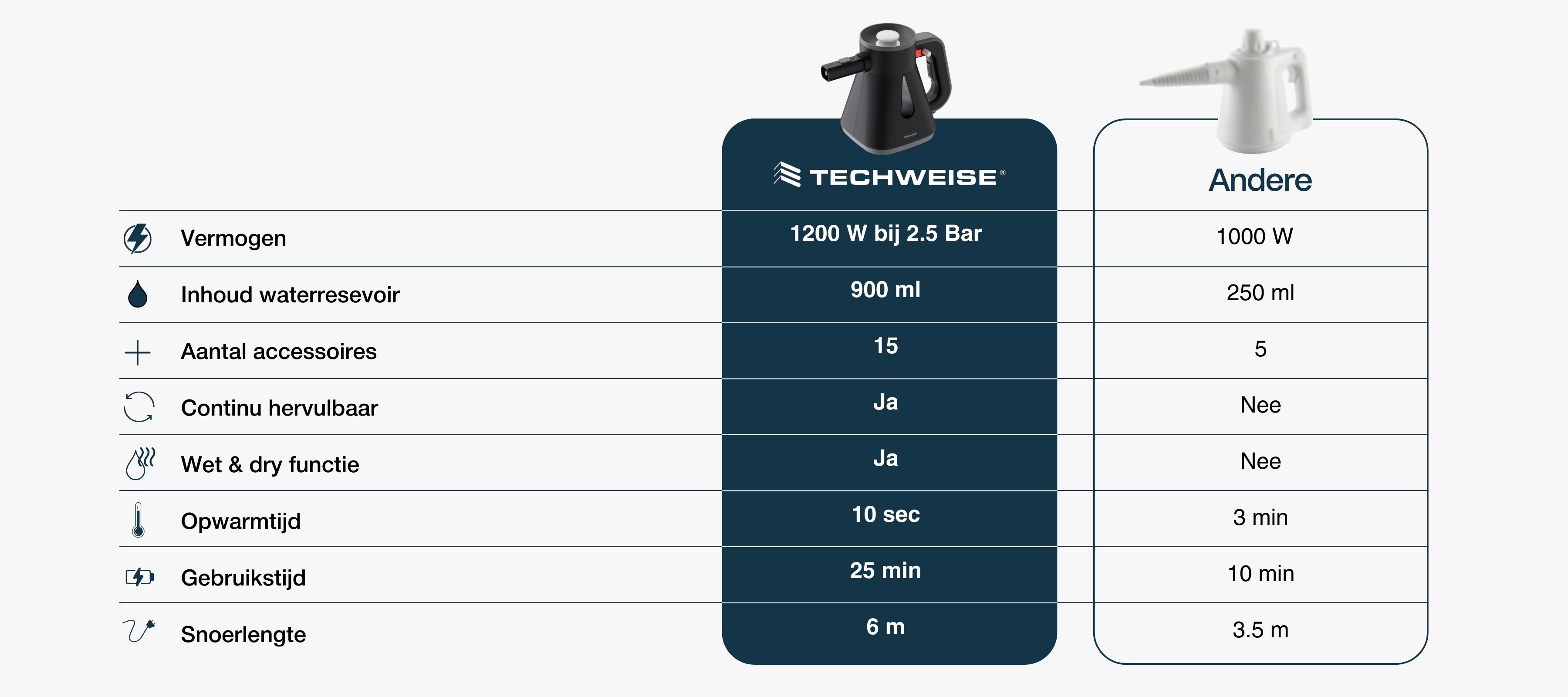 Eso es comprensible. Haz el cuestionario y descubre en un minuto qué limpiador a vapor se adapta mejor a ti: https://techweise.com/pages/help-mij-kiezen